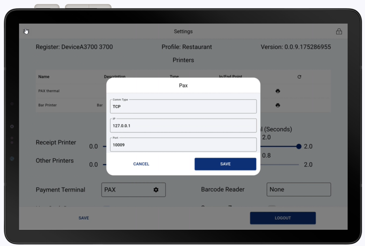 Once the PIN Pad A35 is connected and powered on, configure the PIN Pad settings to connect with the Station L1400.