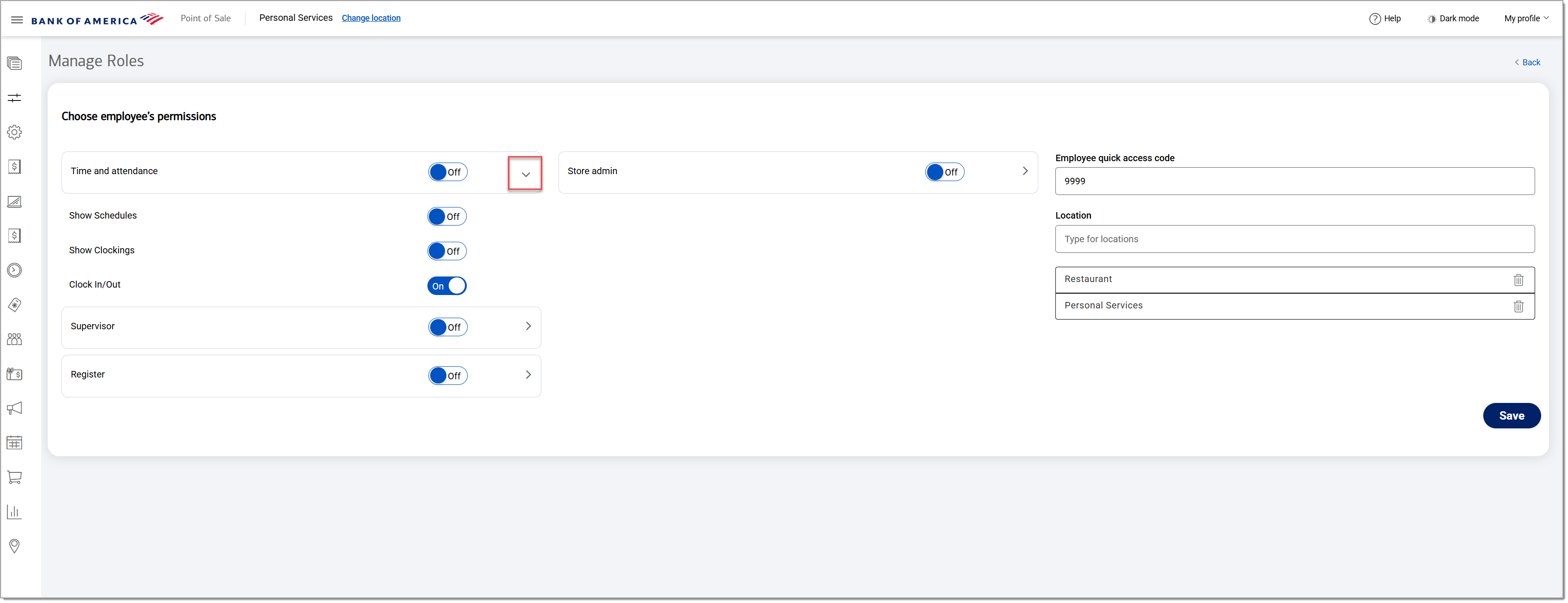 - Now you will enable the permissions and create a quick access code you want for this employee