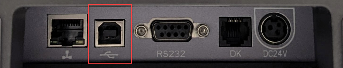 - Plug the USB cable into the USB interface port on the back of the of the printer.